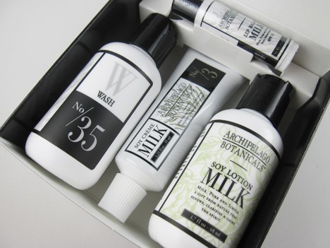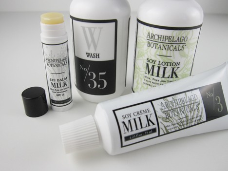 Those little bottles allow me to try a product without much commitment; plus they are cute and easy to carry. So when I got the Best of Soy Milk Gift Set from Archipelago Botanicals ($20) my heart did a little happy dance.