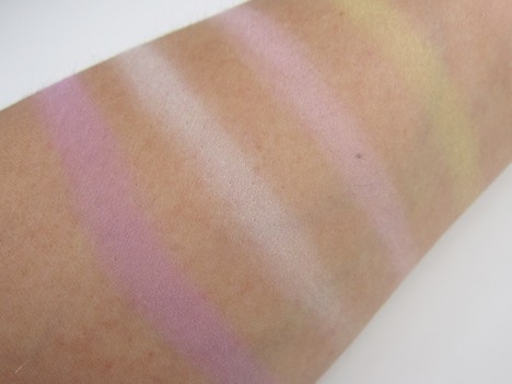 I was pleasantly surprised to see how soft the colors are on the lid. For fun, I applied the bright lime green shade on my lids and added a swipe of black liner. It was a welcome springy change to my otherwise beige lids! The shadows were not long lasting, but would be good for a night on the town.