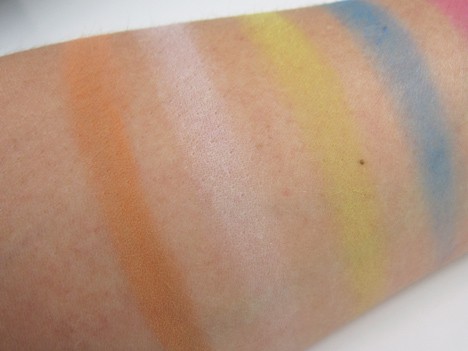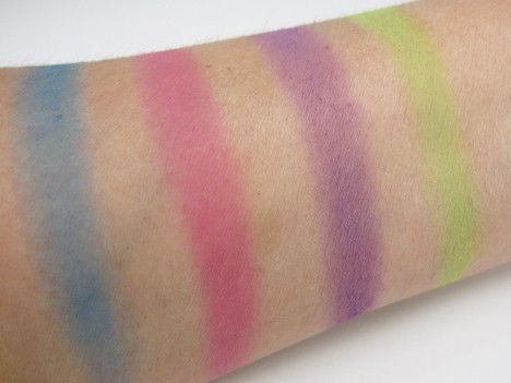 Well, the bright colors were super-bright on me. I honestly didn’t feel my 40-plus year-old self had any business wearing them…I felt a little Annie Potts in Pretty In Pink sporting these. They are a little chalky (yet smooth, nonetheless) and just don’t have the staying power of some of their other shadows. I think the bright colors would be great fun for teenagers. I’d skip the brights, but Abstract is a good value and doesn’t seem to fade as quickly.