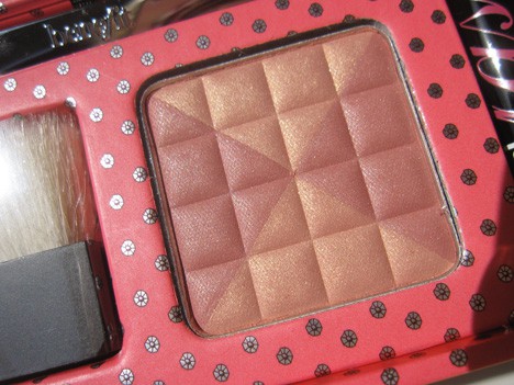 Finally, no Benefit set would be complete without a face powder. Here we have a blush/bronzer hybrid with the pretty Glamming for a soft rose/ peachy pink sheen. There’s an small brush included, similar to those found in the boxed powders, that does the job just fine.
