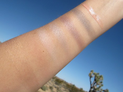 There’s a small duel-ended sponge shadow applicator that will do in a pinch, but I went with my trusty brushes when using these shimmery shades.