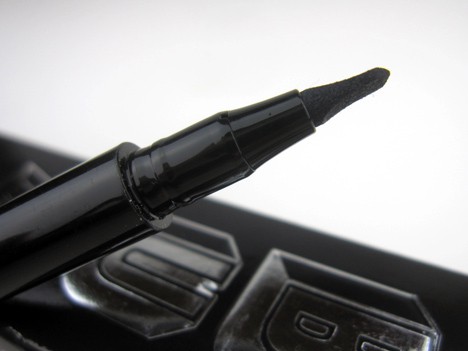 1. The liner is wide, flat with a thin tip. This makes it easy to dot between lashes for a more natural look, or sweep on a dramatic cat’s eye (like Stef’s fab line above). Just use the flat side for thickness, then rotate the liner to the thin tip to wing it out at the end.