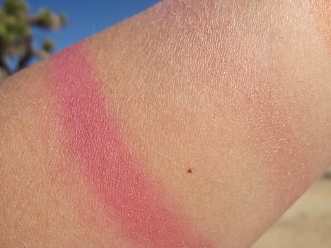 The second shade I tested, Rendezvous, is slightly intimidating in the pan – it’s a bright shade of magenta with a bit of gold shimmer. However, it’s easy to apply and adds a nice flush to my cheeks. For those with tan complexions, this is fabulous.