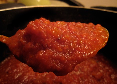 -Season the sauce with more salt and pepper, to taste. Bring to a boil, then reduce heat to a simmer. Cook 1 hour, stirring every 15 minutes, adding a bit of water if the sauce gets too thick.