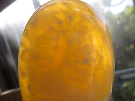 As for the bar itself, I love the color and texture–it’s like golden stained glass! I also found it to lather up nicely and it leaves my skin squeaky-clean, but not dry or tight.