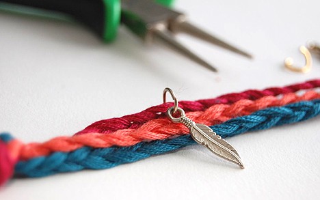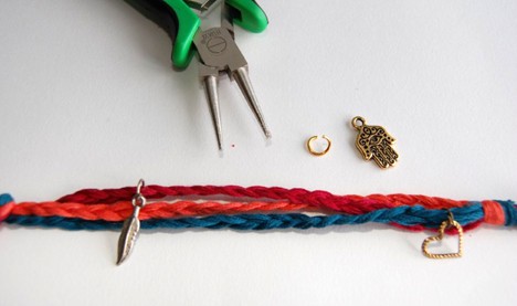 5) If you’d like the charms to stay in place, insert a jump ring straight through a braid.