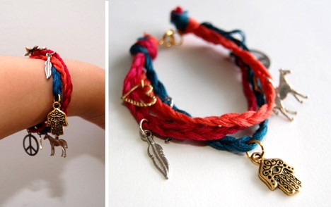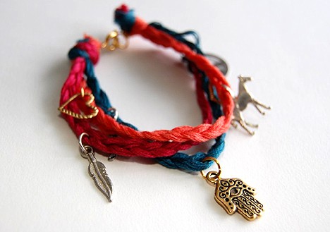 Welcome to my July DIY of the month at we heart this! Inspired by the latest trend of friendship bracelets, this one lets you pick your three favorite colors to make a one-of-a-kind, custom Braided Charm Bracelet.