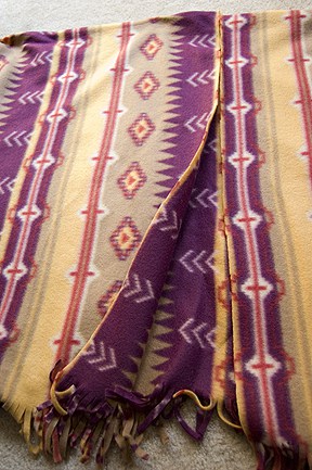 This rates high on the cool-o-meter for me! No sew sounds so easy to execute and that Navajo pattern is so on trend for the season. I”m thinking the “now” color, orange would be great, too. Great job!