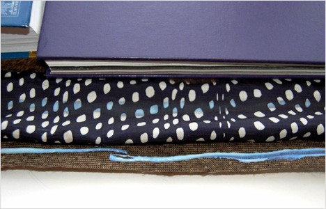 9) Move the books so that they cover the entire width of the fabric. Keep this in place overnight to ensure that the glue is completely dry.