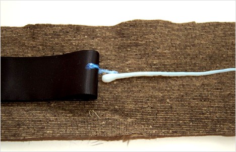 3) Add another line of fabric glue along the ribbon.