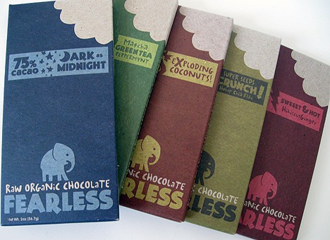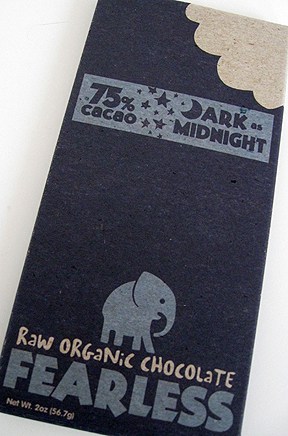 Fearless organic super chocolate, created by Jordan Michael Schuster out of his kitchen in Oakland CA, is the ecologically and socially conscious answer to all your chocolate desires. Organic, raw, vegan, kosher, soy and gluten free; this chocolate is available to those with even incredibly restrictive diets.