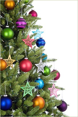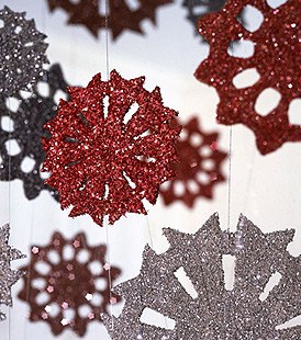 Women’s and home/decor magazines usually have great ideas for themes: All Santa ornaments, an “edible tree” with all things related to food, snowflakes, travel, a favorite sport or team — the possibilities are infinite. A basic color scheme is a great place to start – I love the class and simplicity of all red and silver like these DIY Tinsel Snowflakes from Martha Stewart (above image) – but go with your favorite hues (and it does not have to be red and/or green!)