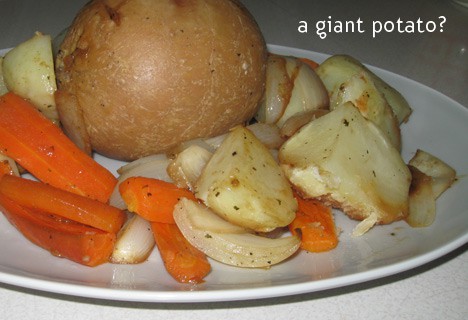 Oh well, keep calm and carry on – let’s read the directions! I was surprised to see the kit wasn’t as complete as I thought. The instructions call for roasting 2 potatoes, 2 large carrots and 1 onion, all peeled and sliced, along with the Tofurky.