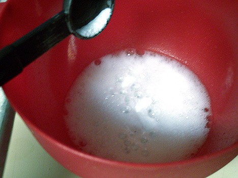 You’ll see the baking soda fizz a lot so make sure your bowl has enough depth to handle the bubbles. At this point, if the baking soda isn’t dissolving – don’t worry!