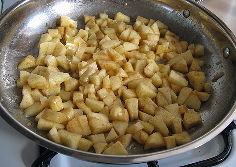 1. To soften and sweeten the apples, Eric first sautéd them in butter with a bit of cinnamon and sugar. Heat until desired consistency and set aside.