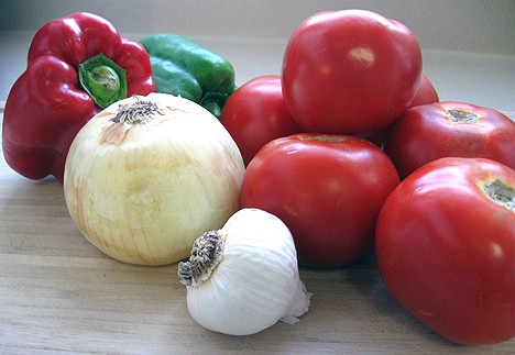 So, with the best tasting tomatoes in season right now, I give you Greg’s super simple gazpacho. There is a good bit of chopping, but that’s the most effort you’ll need – and you could always use a food processor or other gadget.