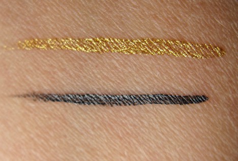 I love, love, love these new eyeliners. They take a few minutes to dry, but once they do they DO NOT MOVE. Seriously, that swatch on my arm lasted through 2 showers. The soft yet firm, spongy applicator has a very pointy tip, allowing for the finest of lines. I do find if you’re not careful you will get it on your lashes as your applying it (making them clumpy). I’m going to play around with applying it while looking down into a mirror held below my chin, rather than looking directly into it (which is also the best way to apply false lashes, if you didn’t know!)