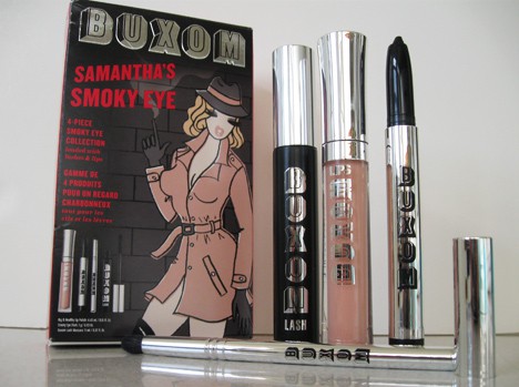 Buxom Stephanie, err- Samanthha, has 3 full size products (whoa, what a deal!) plus a brush that is perfect for the smoky task…