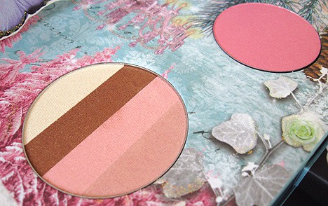 For starters, if you can peel your eyes away from the mesmerizing packaging, you’ll notice our first two two products ‘hidden’ in plain view, pans of La Vie en Rose Blush and Snow Bunny Bronze.
