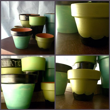 Step 1: Paint your pots with your chosen paints. Have fun and mix things up. Nothing is permanent – you can always let a pot thoroughly dry and then simply start over.