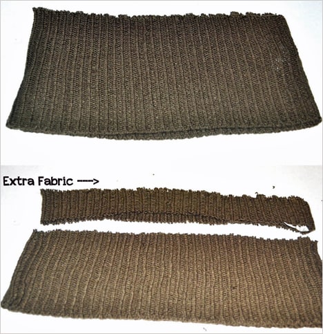 3. Cut the seam of the sweater making the fabric one long piece.