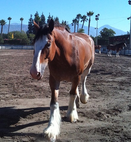 The day before the Grand Opening I visited the large corrals where the Budweiser Clydesdale Horses were allowed to roam. They were in small groups, resting in the shade and nuzzling each other and as soon as I called over, one HUGE fellow, I named “Big Clyde” came right over for some petting and kind words.