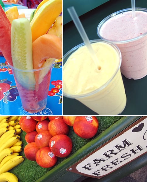 Fair Foodie Tip: Start your day with a fruit filled smoothie. Stef and I both began our foodie journey with a visit to Terri’s Berries where they whip up nutritious and delicious smoothies that are made to order. Using farm fresh fruits (displayed around the stand and for sale by the piece) and juice, Terri’s smoothie mixers will happily prepare their smoothies with or without dairy. Another ‘starter snack’ perfect to kick start the day is a fresh, hand cut, mixed fruit cup. Sweet, cool, refreshing – perfect for a warm weather treat.