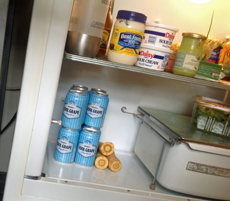 You know how journalists always like to ask what’s in people’s fridges? We got to look in Stefan’s fridge! The first things that caught our eye were the adorably retro-looking Cool Grape cans. Turns out the those cans are not full of grape soda, but a special Finnish cocktail made of gin and grapefruit that Stefan brings back when he visits his home country. He said it comes in packs of 12, so he allows himself one a month as a special treat.