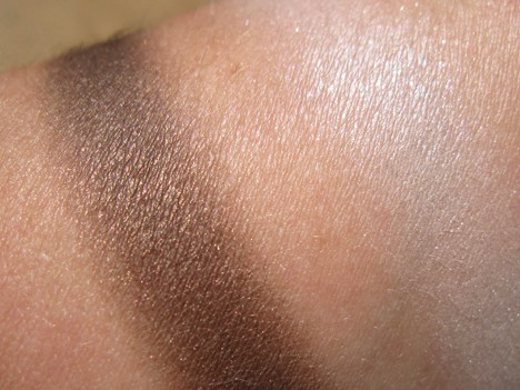 Not to be outdone, Creamy Bisque is an ivory frost with a beautiful pearly glow. A great highlighter. Carbonized is a brown lover’s dream, a rich and shimmering chocolate brown. Moleskin is a gorgeous matte medium nude.