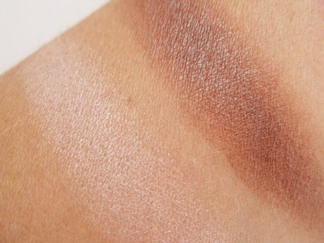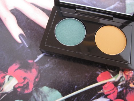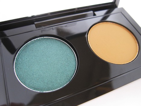 Double Feature 4 is a shimmering metallic emerald veluxe pearl finish and a matte ochre shade (a yellow brown that any painter will instantly know!) I am so all over this duo. It’s such a rich pairing, and I’ve never had an ochre eye shadow before. It seems very fall to me, I can’t wait to break it out with some dark berry plum lipstick. And I have to say, the mattes in this launch have a really creamy texture to them, bravo.