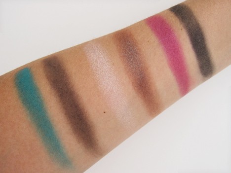 10. Lucky me, I received Double Feature 3 for testing and I love these colors! Yes, the dark chocolate taupe is chalky, but I was able to work around this issue by using it, as @stef suggested, as a liner, and using the gorgeous turquoise on my lid. So pretty!