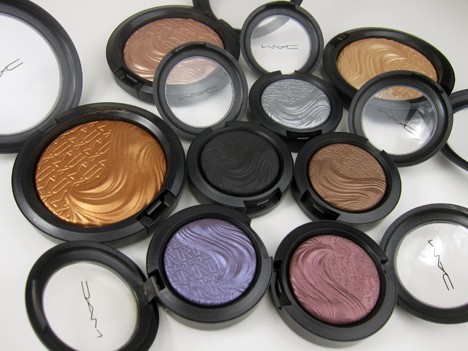 Focusing on Eye Shadows and Skinfinishes, all Extra Dimension products are manufactured through a multistep process that blends creams, liquids, powders and pearls, then removes most of the liquids, leaving pure pigment and pearl. MAC calls this “light powder technology”– light can pass through the product to the skin to show sparkle and glow…