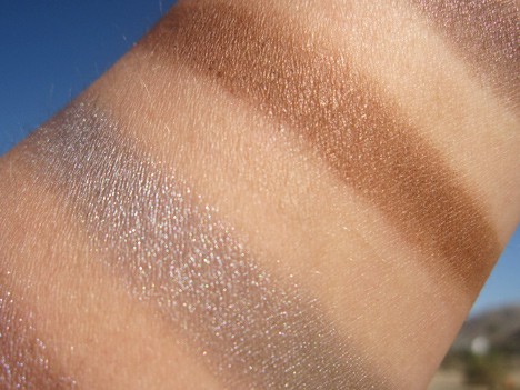 Like the shadows, the Skinfinishes are extremely creamy and full of pigment. Just a touch on a brush gives a subtle glow, but a heavier hand gives some serious metallic power.