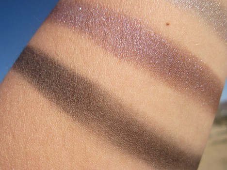Havana–just what I needed, another brown. No, seriously! It’s just the brown I needed. The shimmer is so prevalent yet so finely milled throughout that this is the most metallic-like non metal I can imagine. Silky feel is a given (just as you would expect from MAC) and wear is superlative. We need a galaxy of stars to rate this, it’s my favorite in my whole shadow box! Therefore, I”ll give it all my 5.