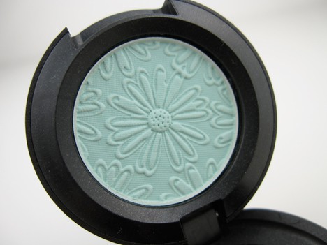 Wow! I love the ’embossed’ eye shadow colors! I would buy these for the design and I would be reluctant to try them for fear of ruining the flower…I may have to break down for Lucky Green. What a happy, spring color!