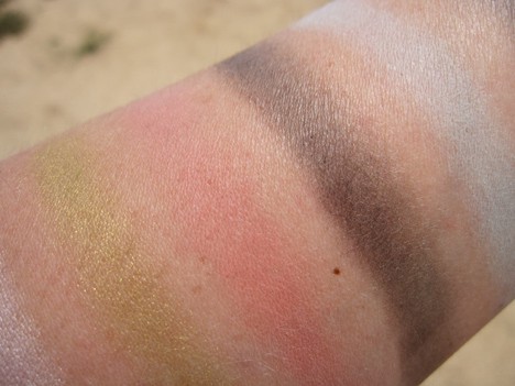 I tried “Free to Be,” the coral eyeshadow. It is a bit hard to wear. Red/coral colors around the eyes can definitely make a gal look a little sickly, but I think that warm tan skin tones can definitely pull this off. I paired it with a neutral slightly shimmery ivory shadow on the browbone, golden eyeshadow on the lid, Free to Be in the crease, and a warm reddish brown in the deep-V. I love the embossed pattern, and the shadow applies smoothly and is decently pigmented. However, it’s one you might want to try on before buying unless you’re a makeup gal who likes to own every color in the rainbow, like myself :) It seems like it would look great on cheeks… I might try it :P Four stars.