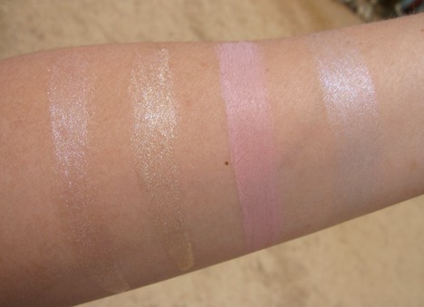 I was dubious about the Summer Shower but this is really fantastic! Pale blue lipcolor? Well, pale shimmery blue+rosey lips=softly purple-y shimmery almost mauve lips. That’s by itself. Swiped on top of other colors it can turn anything into a fun new color! Like Smashbox Illuminator for eyes, this is great for expanding your lipcolor wardrobe!