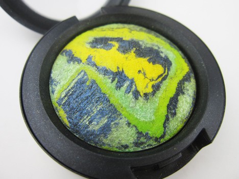 Water is a swirl (MAC calls it a mélange) of a nearly matte bright yellow, shimmery lime green, navy blue with blue metallic sheen, and a chartreuse streak running through it. Applied dry, the color payoff is disappointing. It’s muddy and all of the beautiful shocks of color disappear. Applied wet, it turns into a pretty lime green with blue shimmer. It must be algae filled water, I guess!
