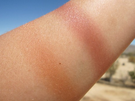 Unlike the eye shadows, no water required for the Mineralize Skinfinish and Blush (there are four of each in this launch). These beauties perform perfectly straight from the pan. We got a look at one of each.
