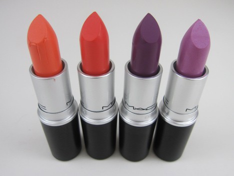 I got to try out Watch Me Simmer and Heroine and for me, WMS is the more wearable of the two. The creamy and deeply bright coral is on trend for the season–it really brightens up my face. I find that I need to make sure my lips are seriously moisturized before applying this or else it shows every flake and crease. I also blot this so it doesn’t look dated on me (my grandmother wore a similar shade in the 80’s)–it also needs to be topped with a little gloss, preferably with a little shimmer. Heroine is a little overpowering on my pale self–it’s that little bit too purple–it’s a deep, true purple on me. I can make it work if I blot it excessively and then slick some shimmer gloss on top of it. In any case, the colors are definitely fun and new–not just your boring “same old same old”. If you’re feeling daring, or wanting something different, you might want to give Watch Me Simmer or Heroine :)