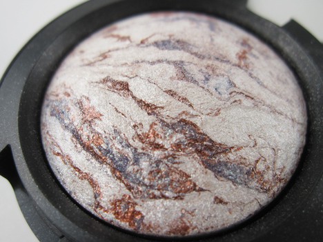 MAC calls these colors a “mélange” and that’s a great description. The colors swirl together randomly, making every pan unique to itself. They looks like sparkling planets to me, with their large domed shaped. Here’s a closer look at the six shimmery shades we tested…