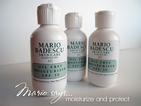 All right, now on to my review of Mario’s newest – the Oil Free Moisturizer with SPF 30. I agree what I really appreciated about this lotion was the simple effectiveness of the entire product;no heavy fragrance to mask the SPF, a simple bottle that makes application easy, the snap close tip for traveling, the protectiveness of the SPF 30, etc. My only issue was the dewy afterglow – while it’s great for the arms, legs and chest, it wasn’t always great for my oily face. If there was less of a sheen to this lotion if would easily become my daily moisturizer. For now, when I’m feeling oily or it’s a humid day, I skip this one.