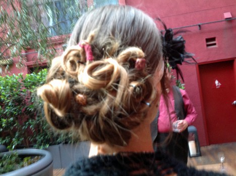 Of course, as a beauty blogger I could not help but be captivated by the fashion, makeup and hair styles of the other attendees and I just had to share this image with our readers. Check out this tousled, twisty bun as seen on the lead singer of the band – how cute is that? And I love her nod to Stella Artois Cidre with the festive, apple-red ribbon.