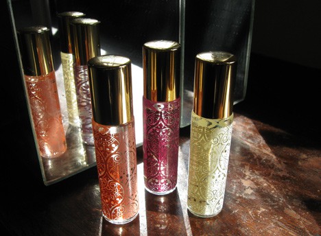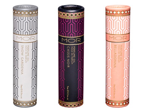 The oils come in a tube, stylized in a very art deco manner. The glass bottle has a lovely pattern that reminds me of elegant Victorian flocked wall paper. Plus, they’re topped with a roller ball for easy application. The wht team was lucky enough to test three of MORs five dreamy scents.