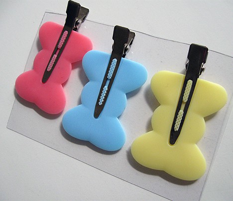 These brilliant little clips ($5.99 for a pack of 3) keep hair in place without creasing! Use them to sweep back bangs while applying make up, or to hold sections in place while blow drying or flat ironing hair – without getting bumps or lumps. Of course they are so cute and colorful (and available in a variety of styles) you could wear the clip all day too.