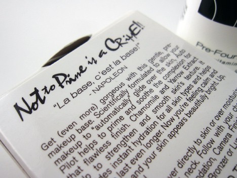 My most recent primer adventure comes courtesy of world renowned Australian makeup artist Napoleon Perdis. He really seems to take his primer quite seriously. He even has a motto, “Not to prime is a crime!” Based on the performance of his primer, I would have to agree. (Me too! Stef and I first got a look at this primer at IMATS Los Angeles and fell in love with its silky, soothing formula ~ Tyna)