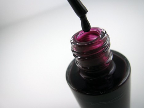 Rebel is a rich yet bright fuchsia satin with subtle fuchsia shimmer. Very pretty (and much more wearable than the two mattes).