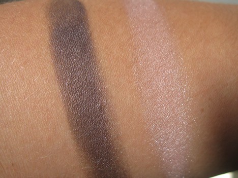 The shadows are very rich in pigment, go on smoothly and blend easily. I tested two duos, St. Croix, a gorgeous duo of a pearly pink and shimmery grayish plum, and Antigua, a dark shimmering brown and medium brownish pink matte. Both duos are complimentary to each other and can be mixed and worn together for even more color combinations.