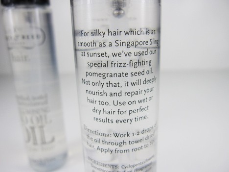I was a bit intrigued by the Volumising No Oil Oil; I tested the version for fine hair and it’s also available for thick hair. The scent is both floral and herbal – an interesting combination.