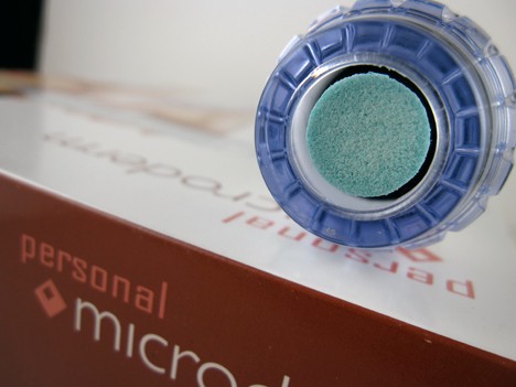 Personal Microderm is just that, an at home microdermabrasion system. Looking and acting very much like a Dremel tool, it comes with discs coated with aluminum oxide micro crystals, in different degrees of coarseness, that spin and gently resurface the superficial layers of your skin. The first time I turned it on it was a combination of sheer delight and utter fear; was I really going to sand my own skin? Yes, I’m really going to sand my own skin! Let’s do this.